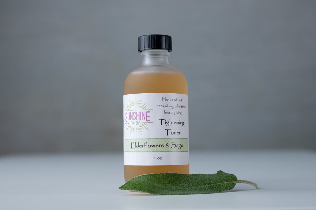Step 3 Apply our Elderflowers and Sage Toner with a cotton ball. This is an astringent toner which means it assists in tightening pores without drying the skin. The active ingredients; elderflower and sage extracts along with witch hazel are all certified organic. Skin appearances that may benefit from this toner are ruddy, large pored, rough and blotchy, and even red and oozing spots.